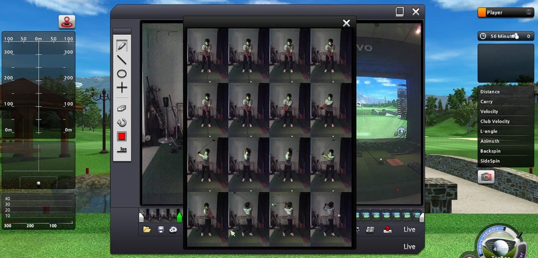 Use alignment lines, angles, and circles in multiple colors to analyze your posture and swing mechanics during the backswing and downswing. Visualize your movement with 16 split-frame images for detailed analysis, helping you refine your technique and lower your score.