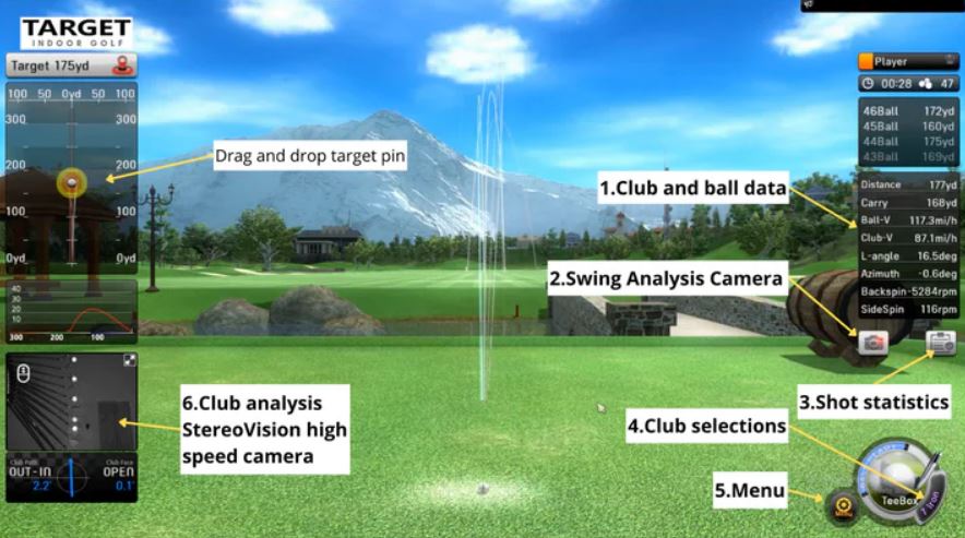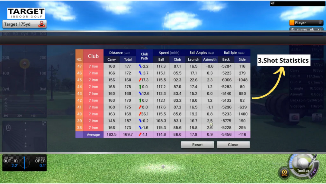 Shot statistics are captured instantly after each swing, giving you a clear breakdown of performance across multiple metrics. You can review carry and total distance, club and ball speed, launch angles, spin rates, and club path—all in one place in the driving range mode. With averages calculated automatically and a history of your recent shots displayed, it’s easy to track trends, identify patterns, and make adjustments based on real data.