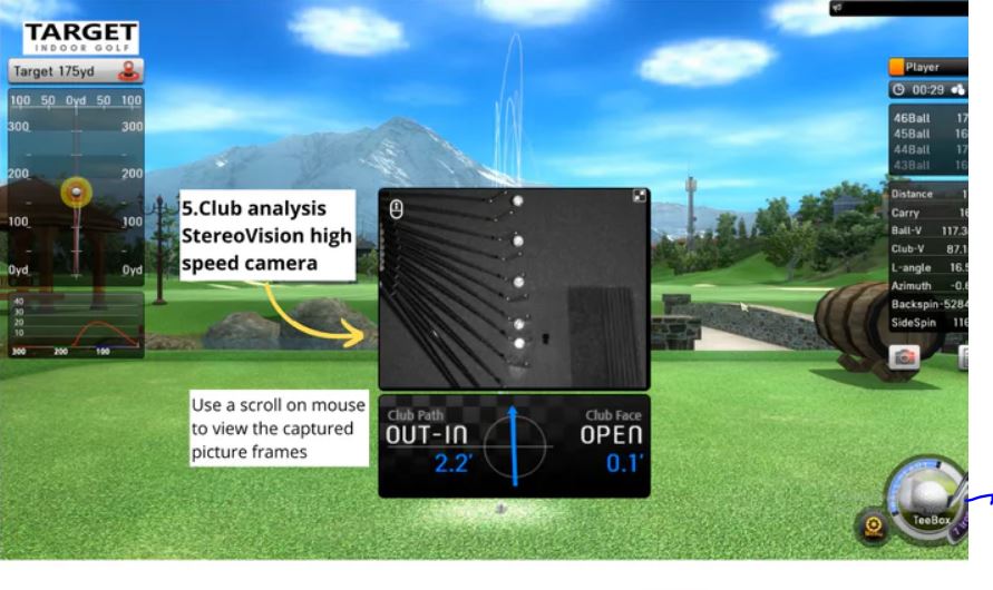 Practice with purpose using TARGET Golf Simulator’s advanced tracking system and high-speed swing camera. The system captures every detail of your swing—club path, face angle, impact position, ball speed, launch angle, and spin—in real time. This allows you to analyze your mechanics with precision, make targeted adjustments, and see the immediate effect of every swing.